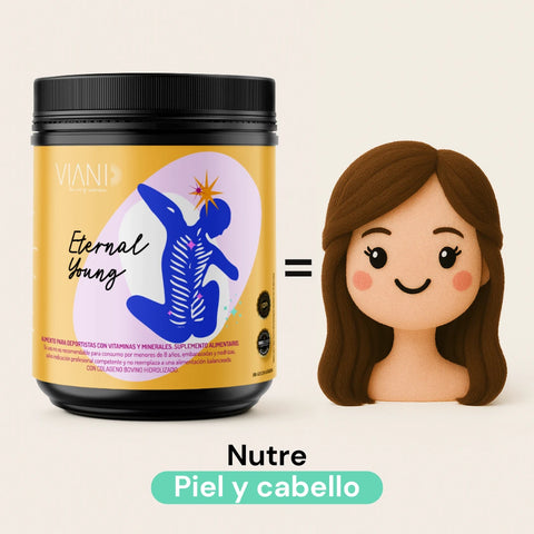 Eternal Young es un suplemento premium desarrollado científicamente a base de colágeno bovino hidrolizado, bisglicinto de magnesio y potentes antioxidantes naturales como la cúrcuma y el jengibre. Esta formulación única está diseñada para nutrir y fortalecer tu sistema osteoarticular mientras proporciona los nutrientes esenciales para mantener una piel radiante y elástica.