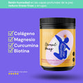 Los componentes antioxidantes de la cúrcuma combaten los radicales libres que aceleran el envejecimiento cutáneo, mientras que la combinación de colágeno y magnesio ayuda a retener la humedad en las capas profundas de la piel, reduciendo visiblemente líneas finas y arrugas.