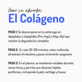 El colágeno hidrolizado de bajo peso molecular es absorbido eficientemente por el organismo, proporcionando los aminoácidos necesarios para mantener la estructura y elasticidad de la piel. La biotina (150mg), conocida como la vitamina de la belleza, fortalece cabello, piel y uñas desde el interior.